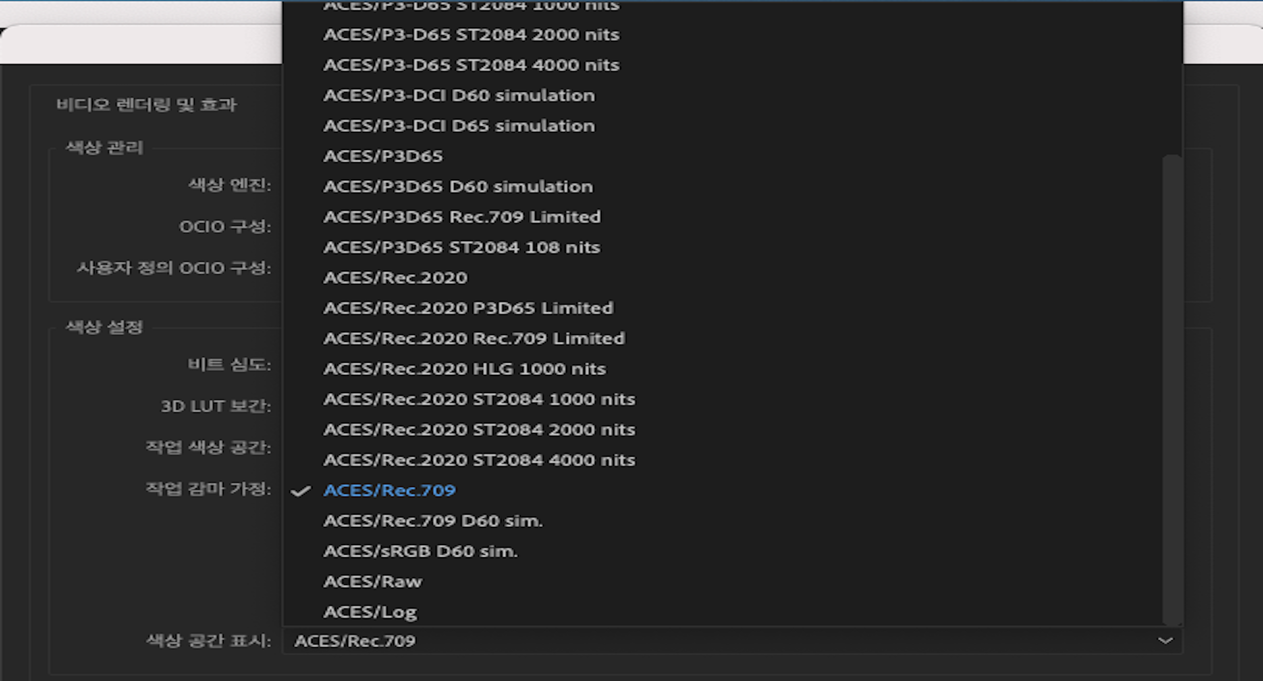 OpenColorIO 및 ACE 색상 관리
