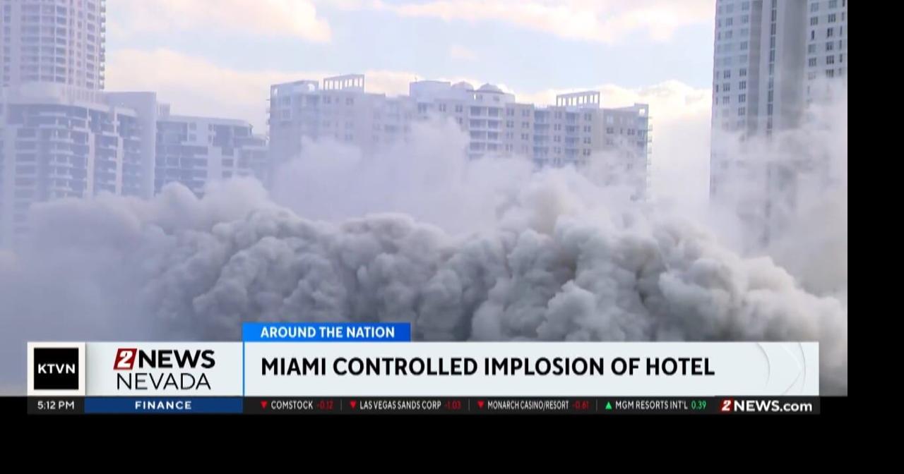 A controlled implosion brought down a landmark hotel in Miami, Florida ...