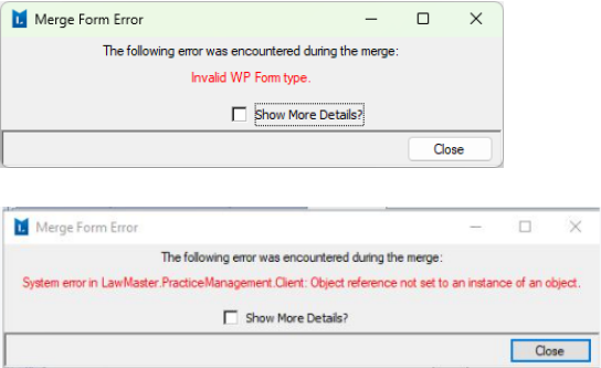System Forms - Merge Form Error – LawMaster Support