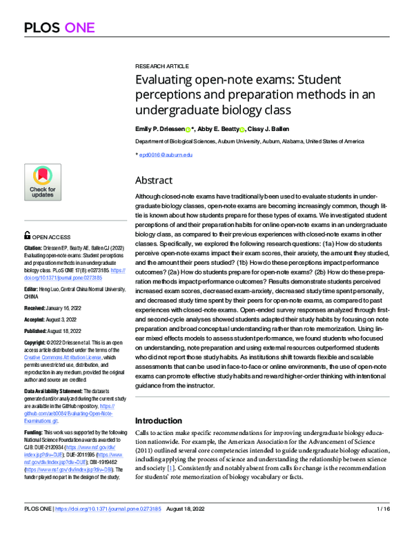 (PDF) Evaluating open-note exams: Student perceptions and preparation ...
