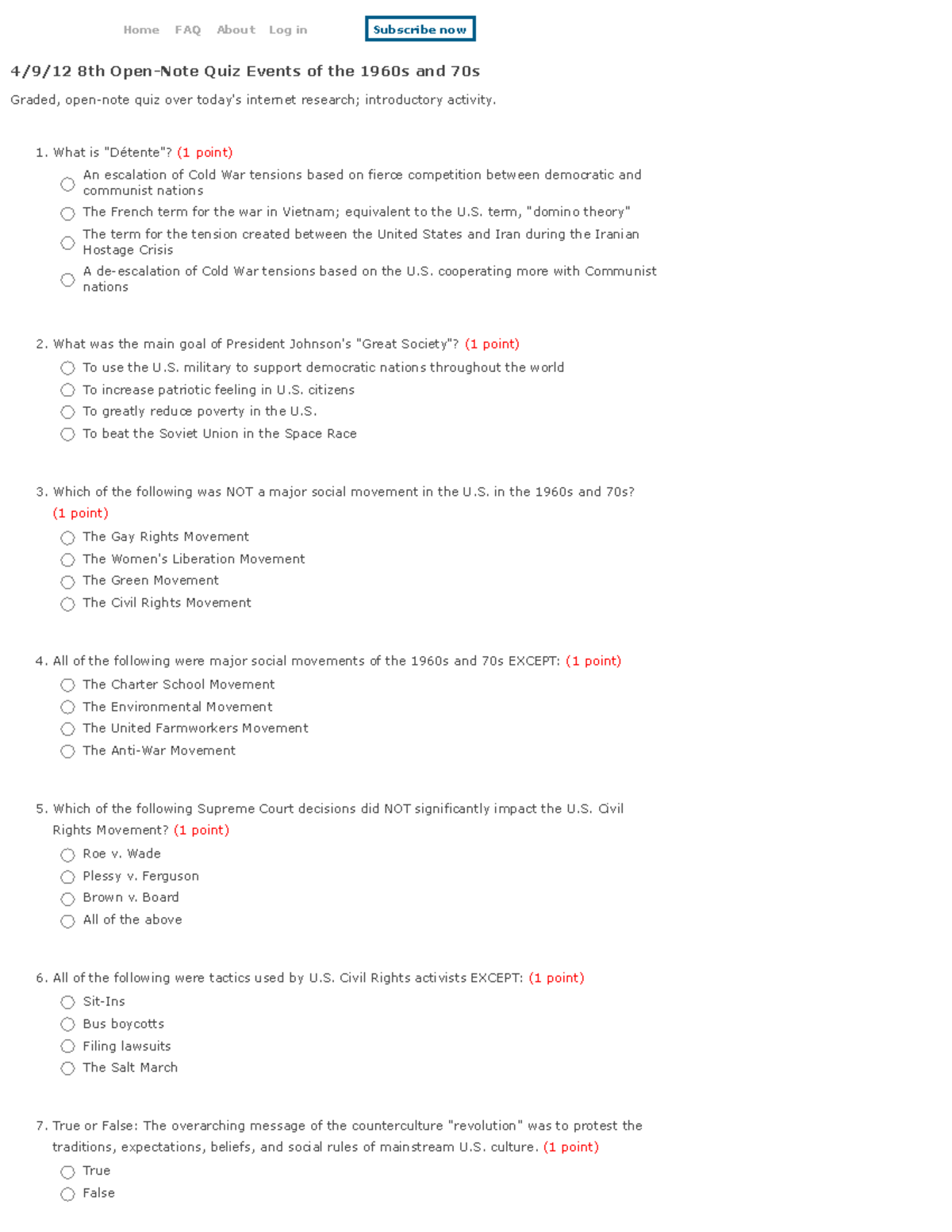 8th Grade Open-Note Quiz: Events of the 1960s and 70s - Studocu