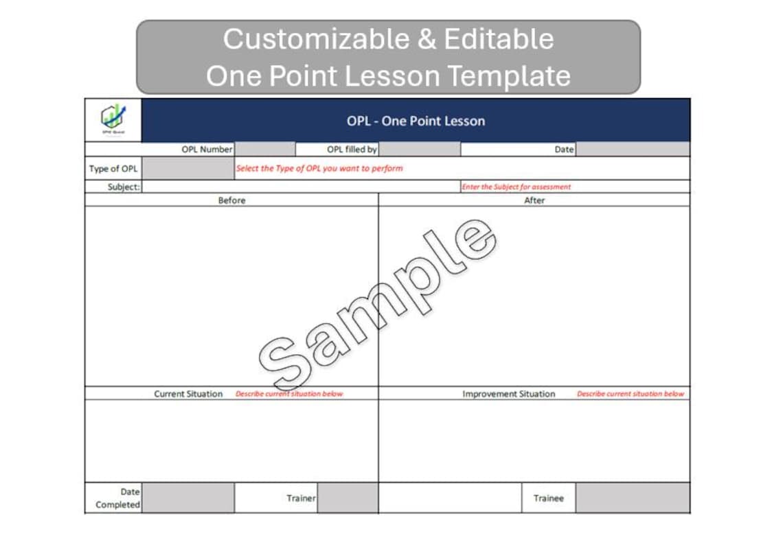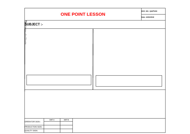 OPL – One Point Lesson Template – Free Download – Lean Manufacturing