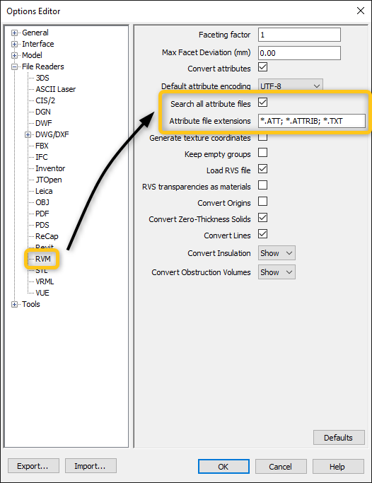 Attributes are incorrect or not imported with the RVM file in Navisworks