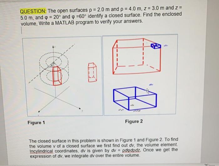 SOLVED: The open surfaces ρ = 2.0m and ρ = 4.0m, z = 3.0m and z = 5.0m ...