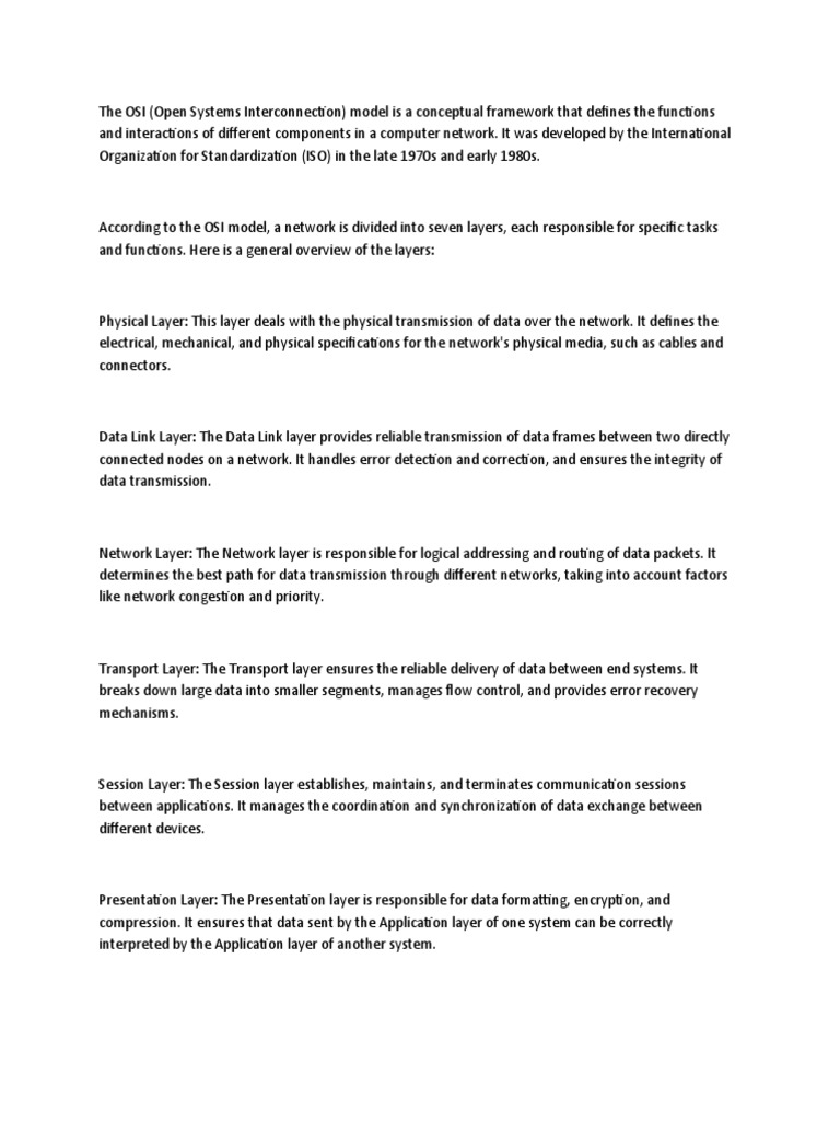 The Open System Interconnection Model (OSI) Hand Notes - Docsity