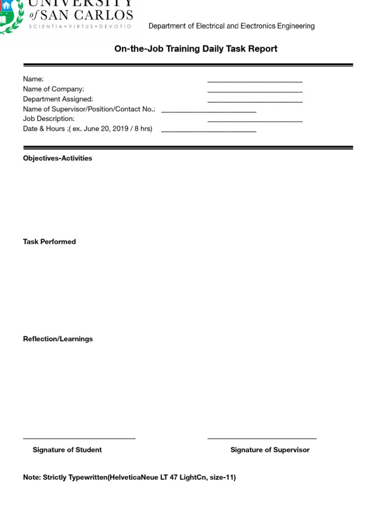 OJT Daily Task Report Template | PDF
