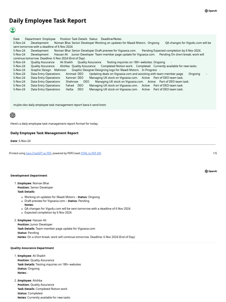 Daily Employee Task Report | PDF | Software Engineering | Digital ...