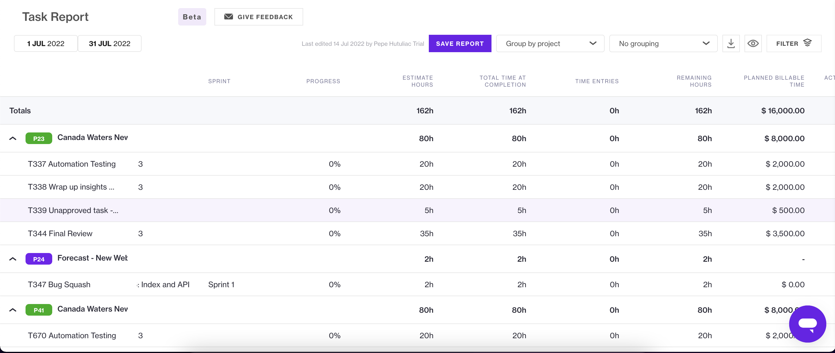 Task Report | Output Time Project Management Tool