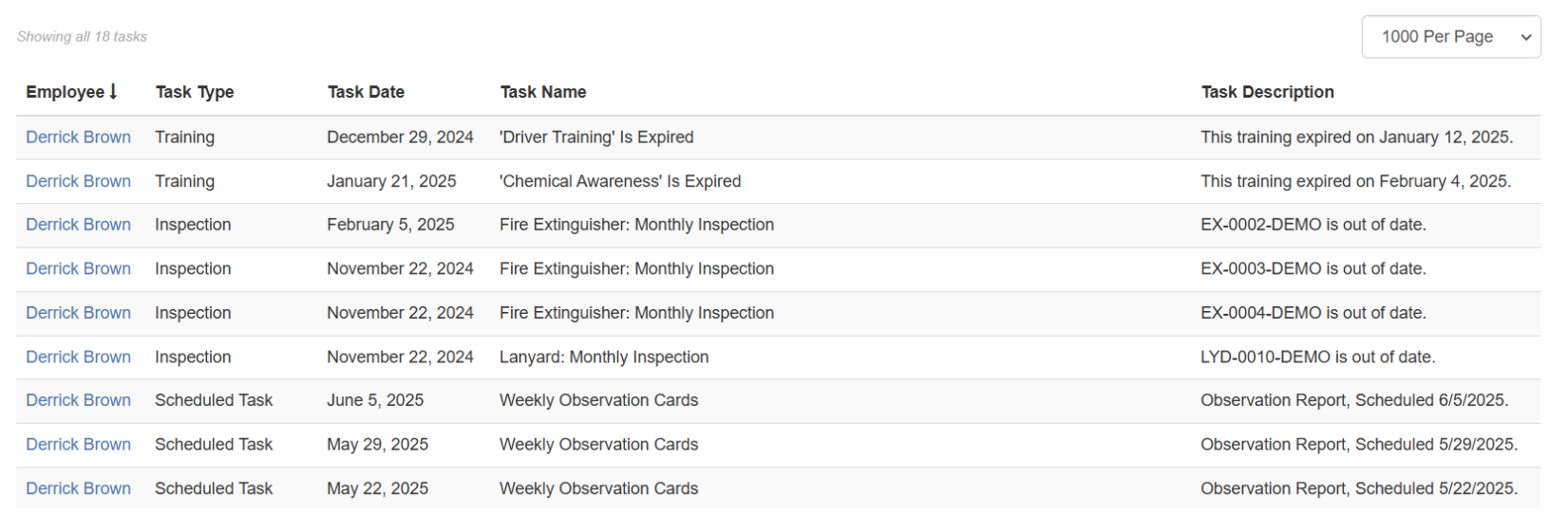 Tasks by User - All Tasks Report