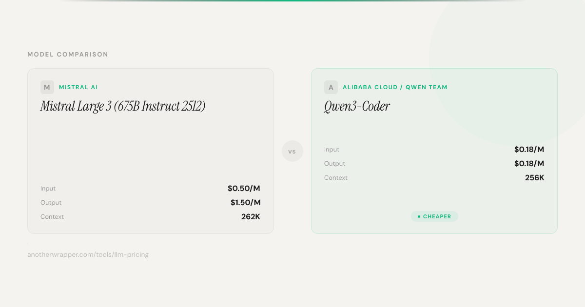Mistral Large 3 (675B Instruct 2512) vs Qwen3-Coder — Pricing ...