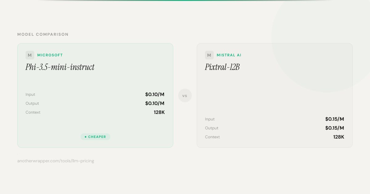 Phi-3.5-mini-instruct vs Pixtral-12B — Pricing, Benchmarks ...