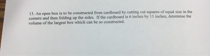 Solved 11) An open box is to be constructed from a piece of | Chegg.com