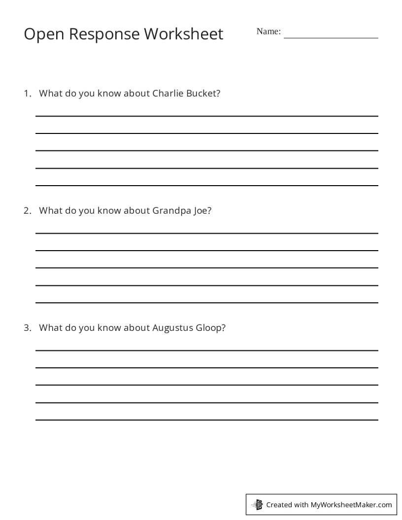 Open Response Worksheet - My Worksheet Maker: Create Your Own Worksheets