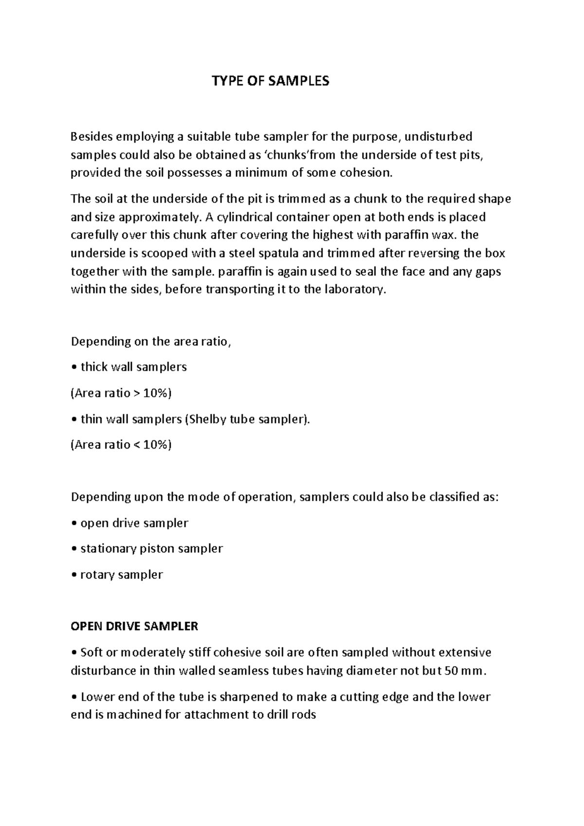 Types of Soil Samplers: Open Drive, Piston, and Rotary Methods - Studocu