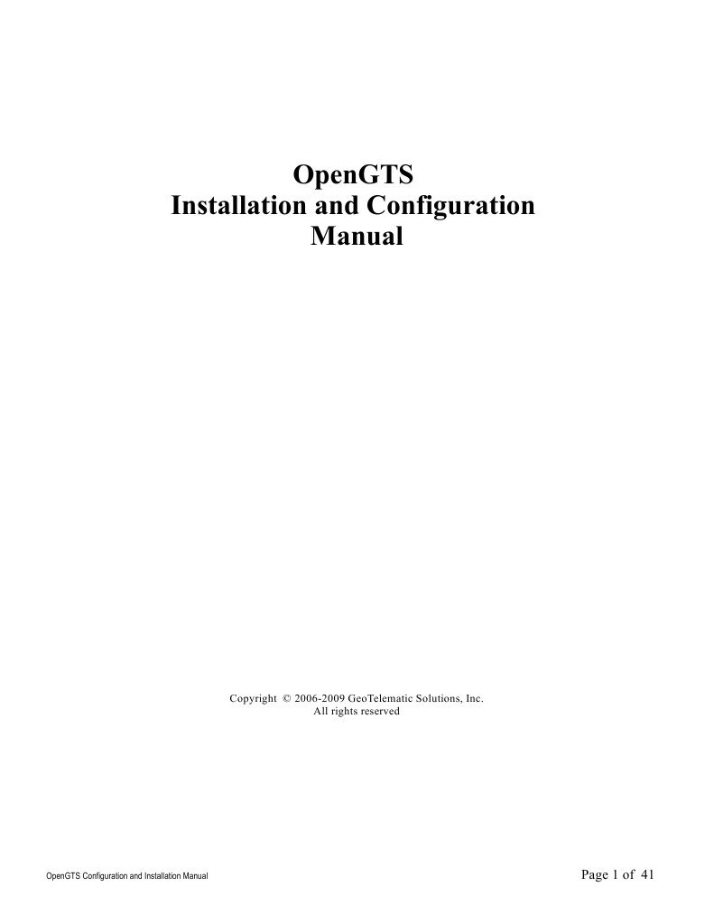 Opengts Installation and Configuration Manual: All Rights Reserved ...