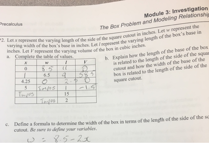 Solved The Box Problem and Modeling Relationships *1. | Chegg.com