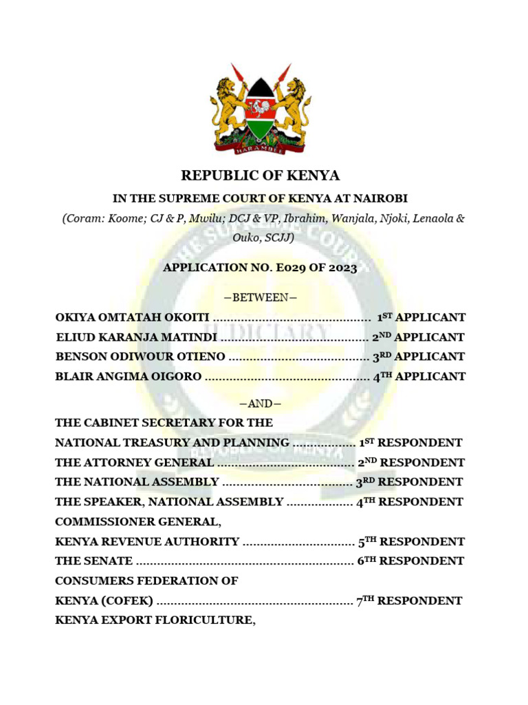 SC Application No. E029 of 2023 Okiya Omtatah Okoiti 3 Others vs. the ...