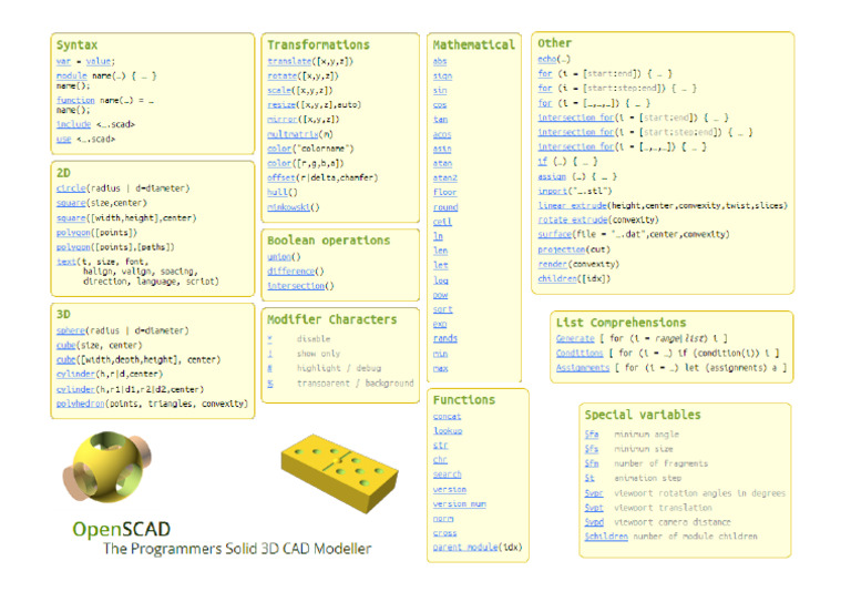 Openscad Cheat Sheet Download Printable PDF | Templateroller