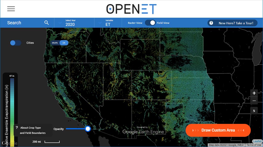 The OpenET data explore interface on Google Earth Engine enables free ...