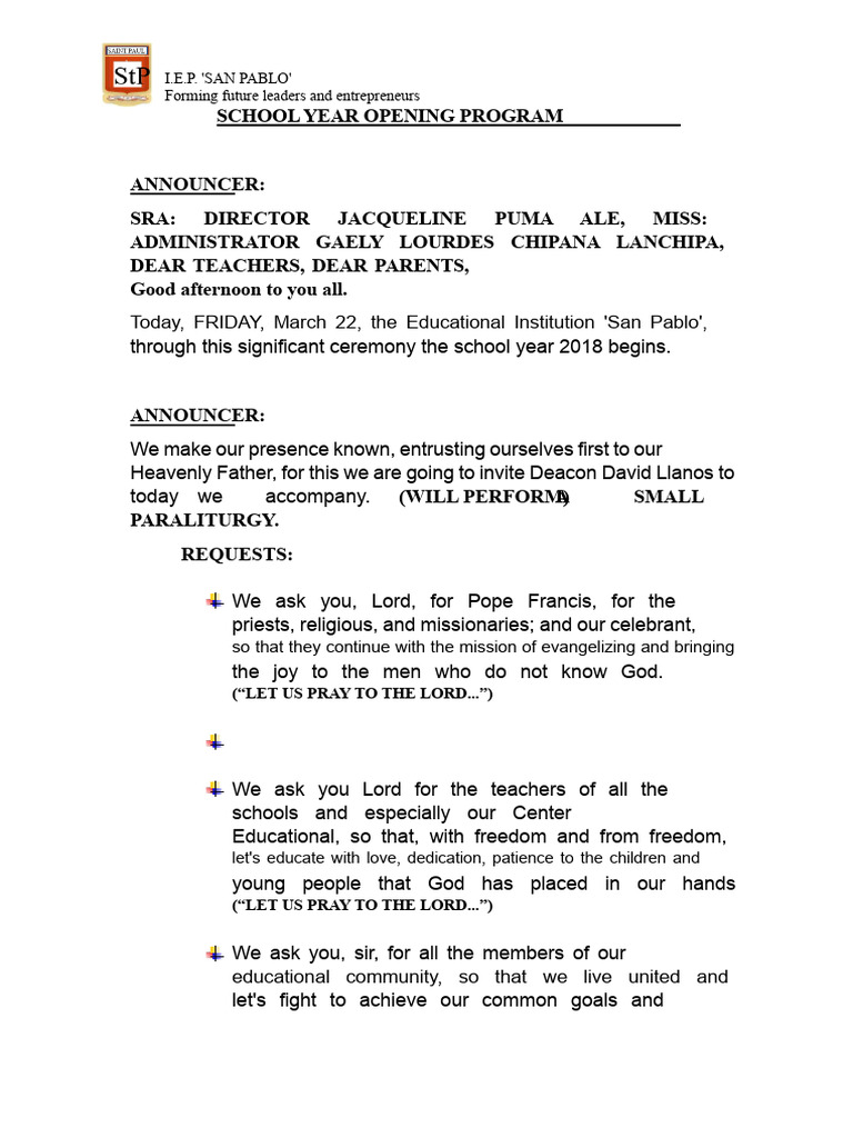 School Year Opening Program | PDF | Spirituality
