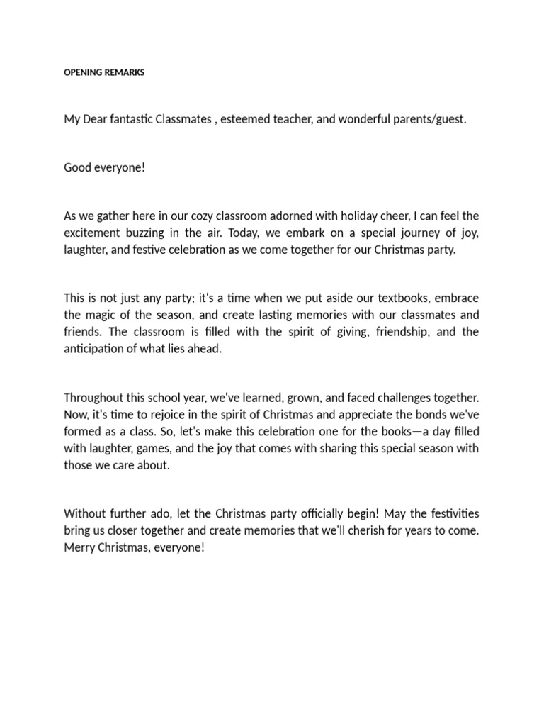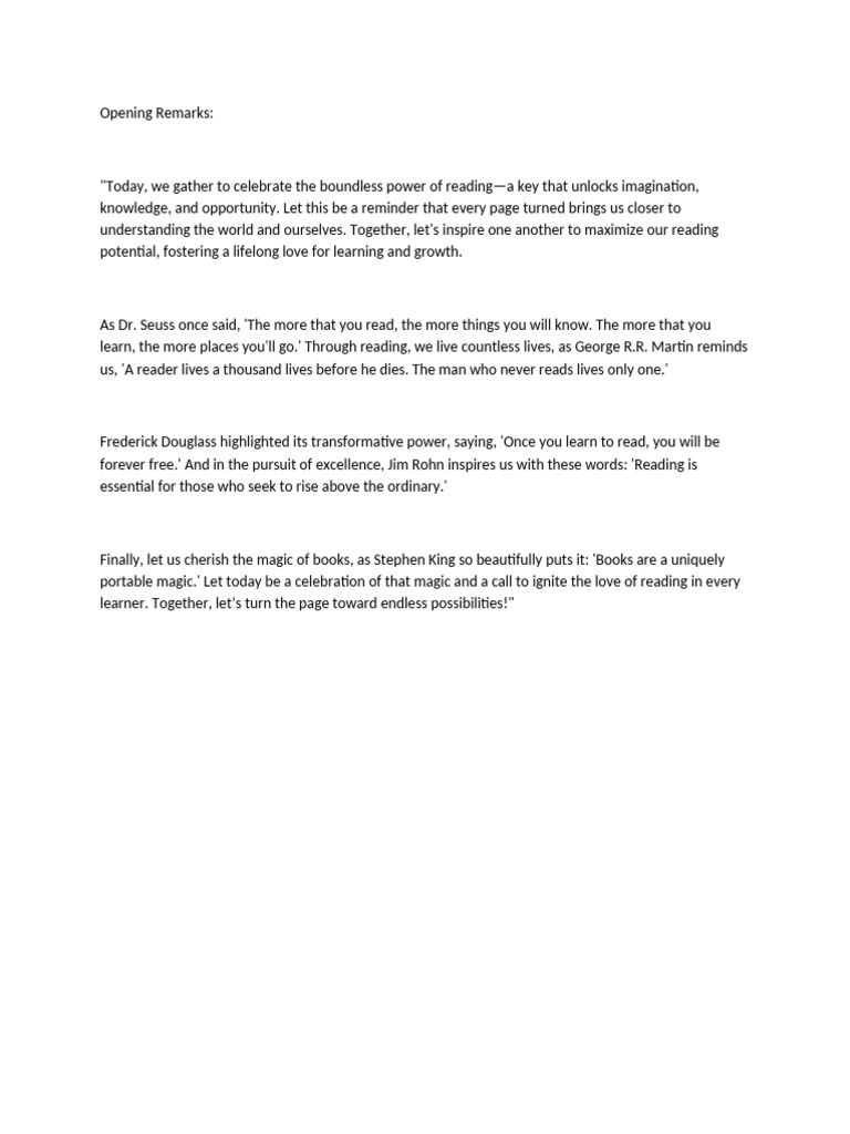 Opening Remarks Sample | PDF