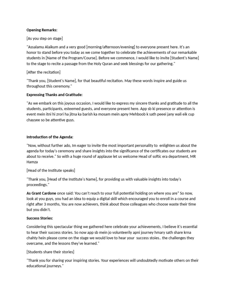 Welcome Remarks For Graduation | PDF