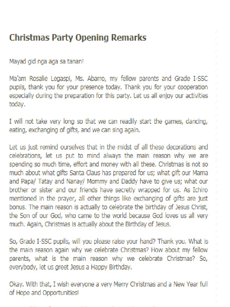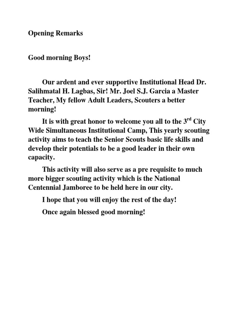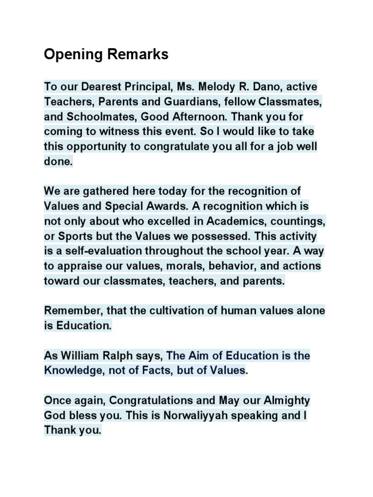 Opening Remarks Sample | PDF