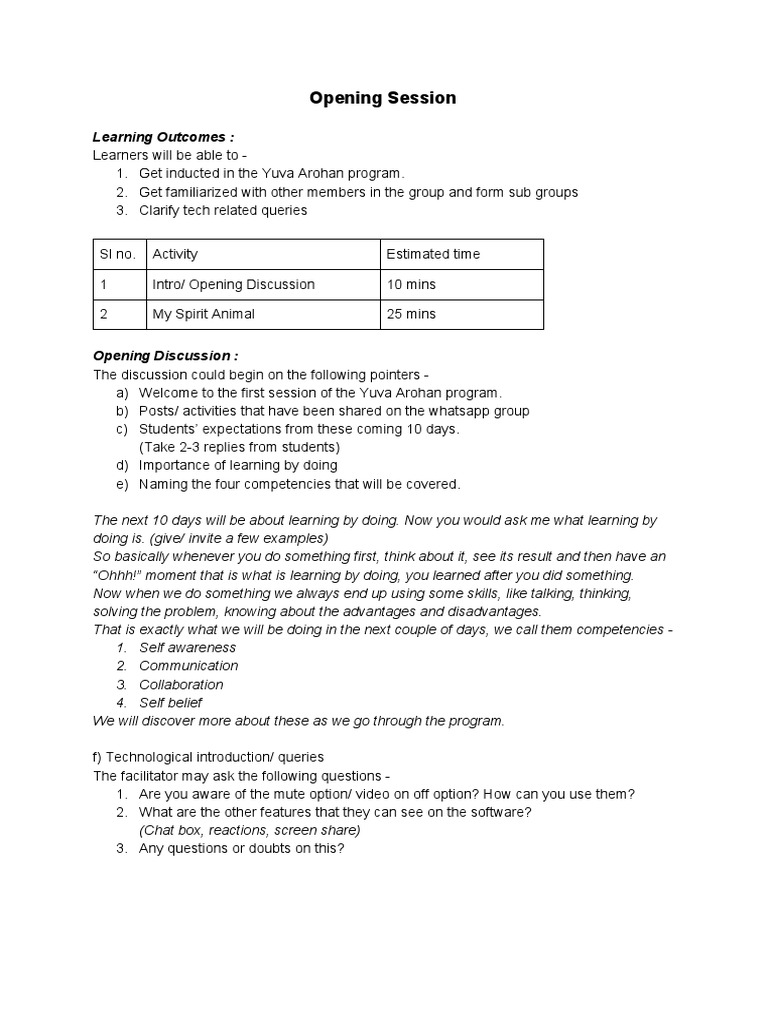 Opening Session: Learning Outcomes | PDF | Pedagogy | Learning