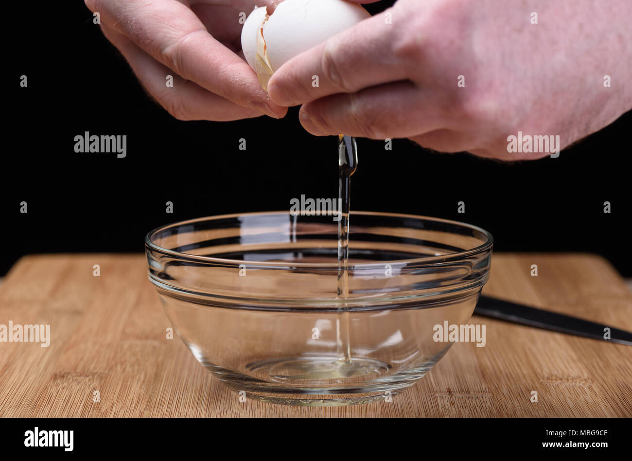 Opening the egg shell close up rustic style Stock Photo - Alamy