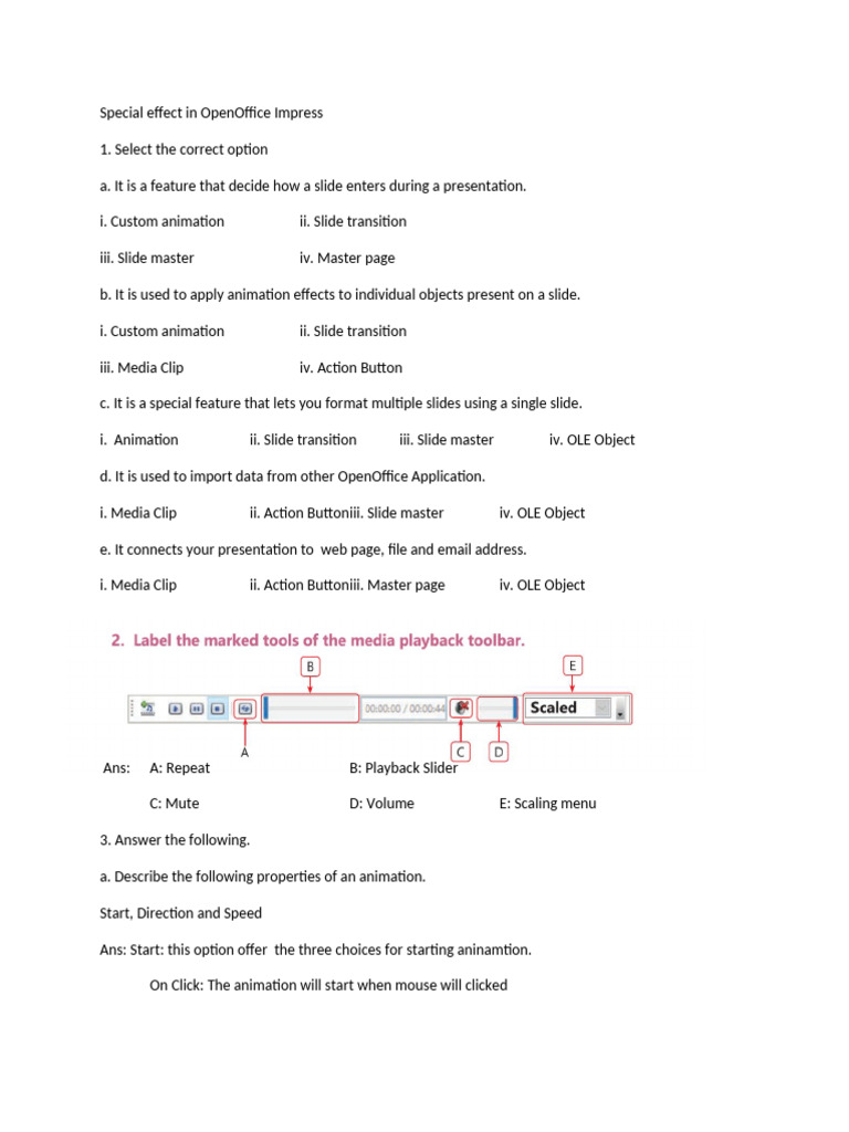 Grade V Exersice Question Special Effect in OpenOffice Impress | PDF ...