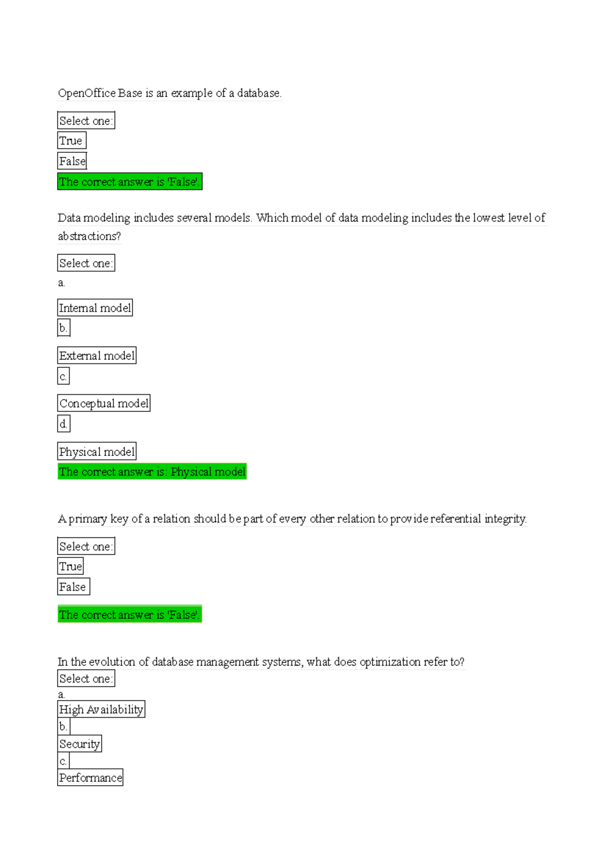 Quizzes - OpenOffice Base is an example of a database. Select one: True ...