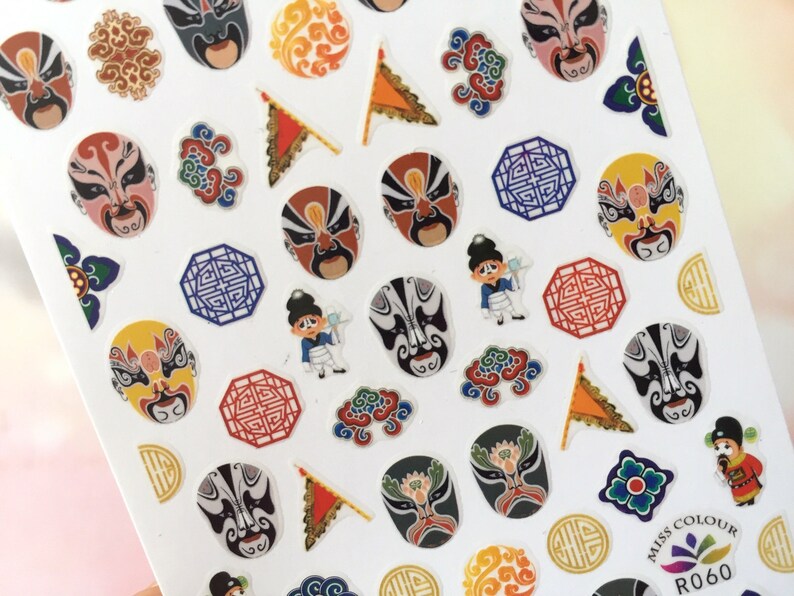 130 Cute Opera Face Stickers Chinese Opera Mask Nail Art Sticker Super ...