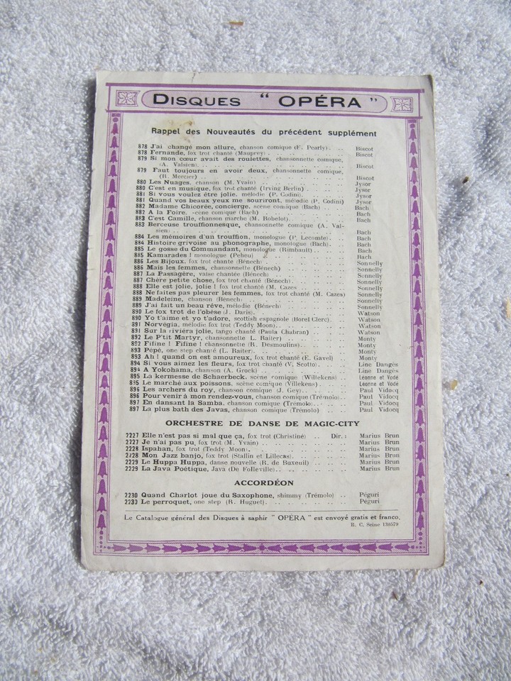 1924 French Disques OPERA Artistiques CATALOG Supplément Juillet Pathe ...