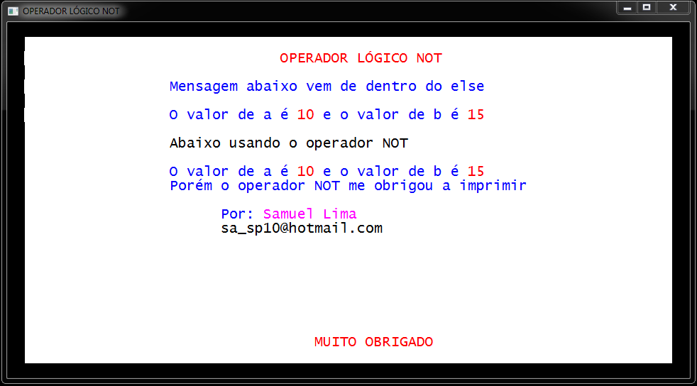 Samuel Lima - Programador C/C++ : Operador lógico NOT