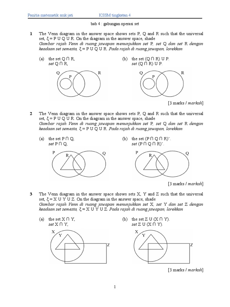 Latihan Gabungan Operasi Set Bahagian 1 | PDF