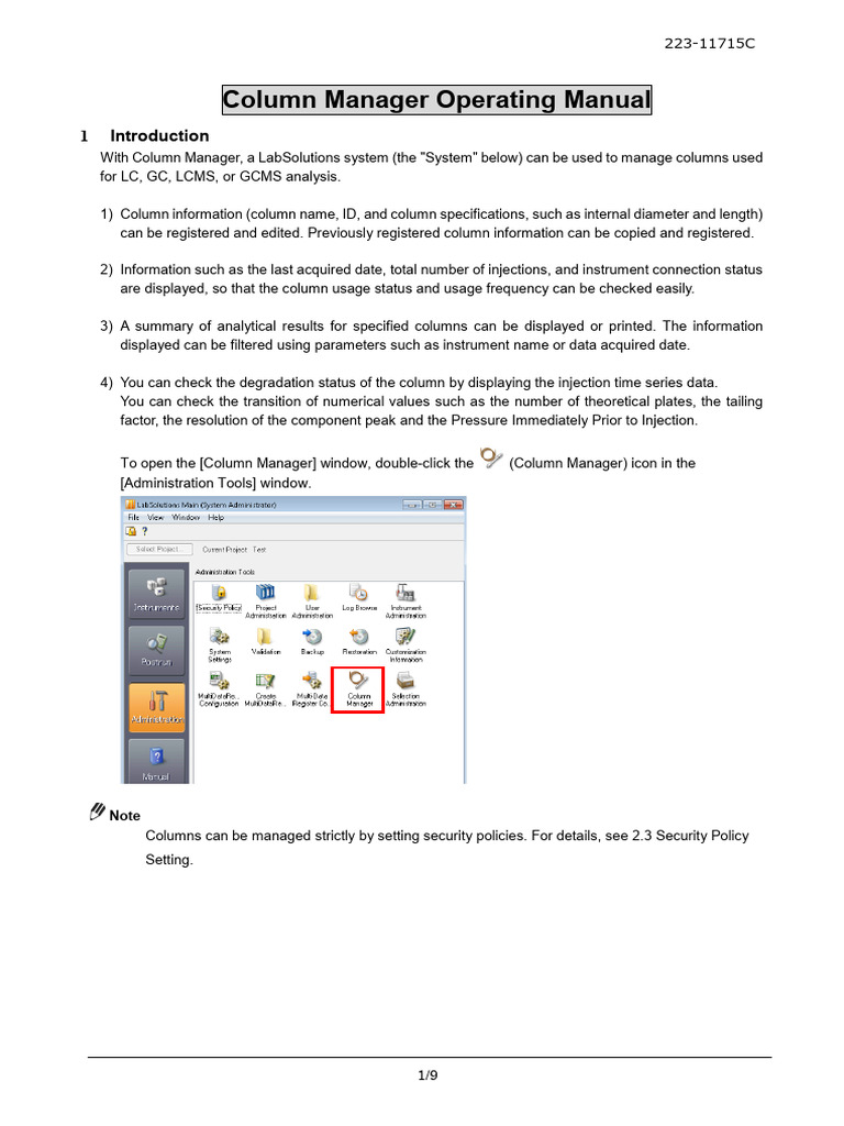 Column Manager Operating Manual | PDF | Gas Chromatography–Mass ...