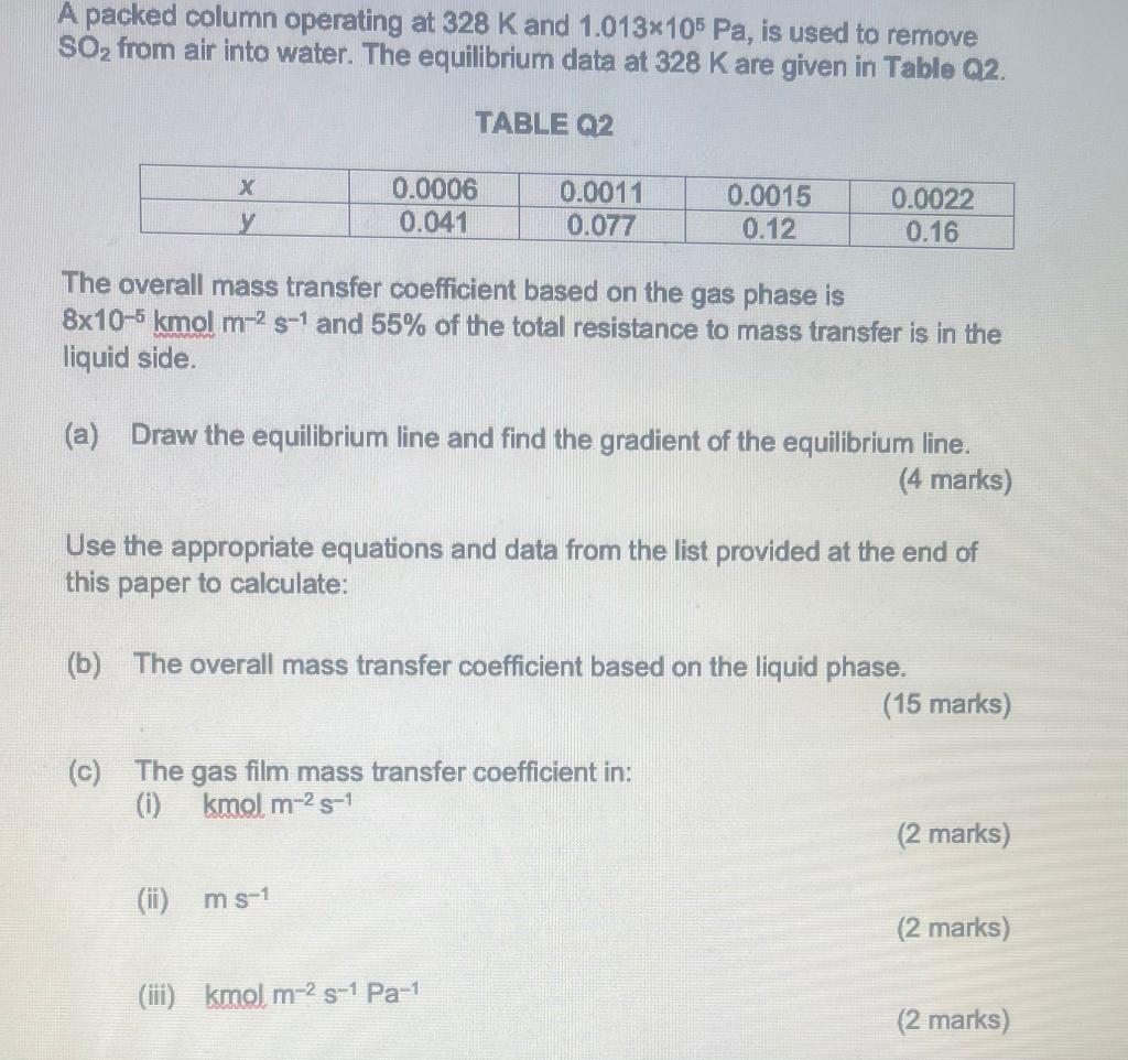 A packed column operating at 328 K and 1.013×105 Pa, | Chegg.com