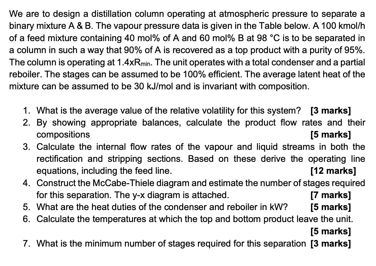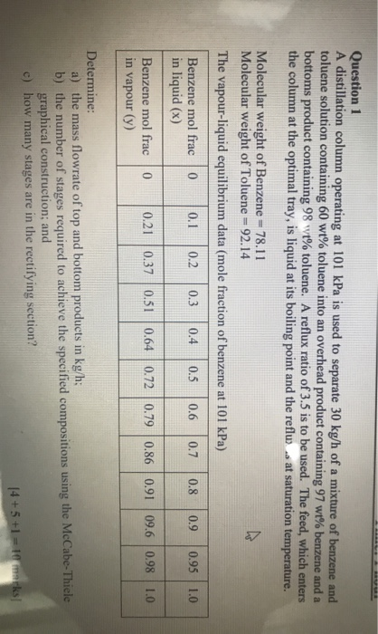 Solved Question 1 A distillation column operating at 101 kPa | Chegg.com