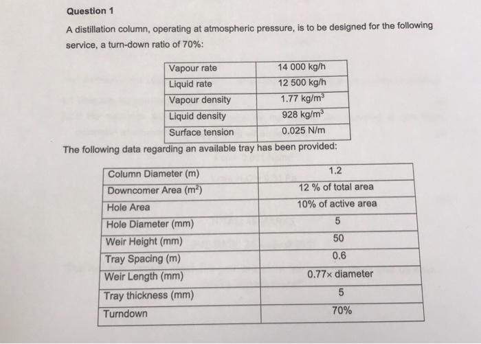 Solved Question 1 A distillation column, operating at | Chegg.com