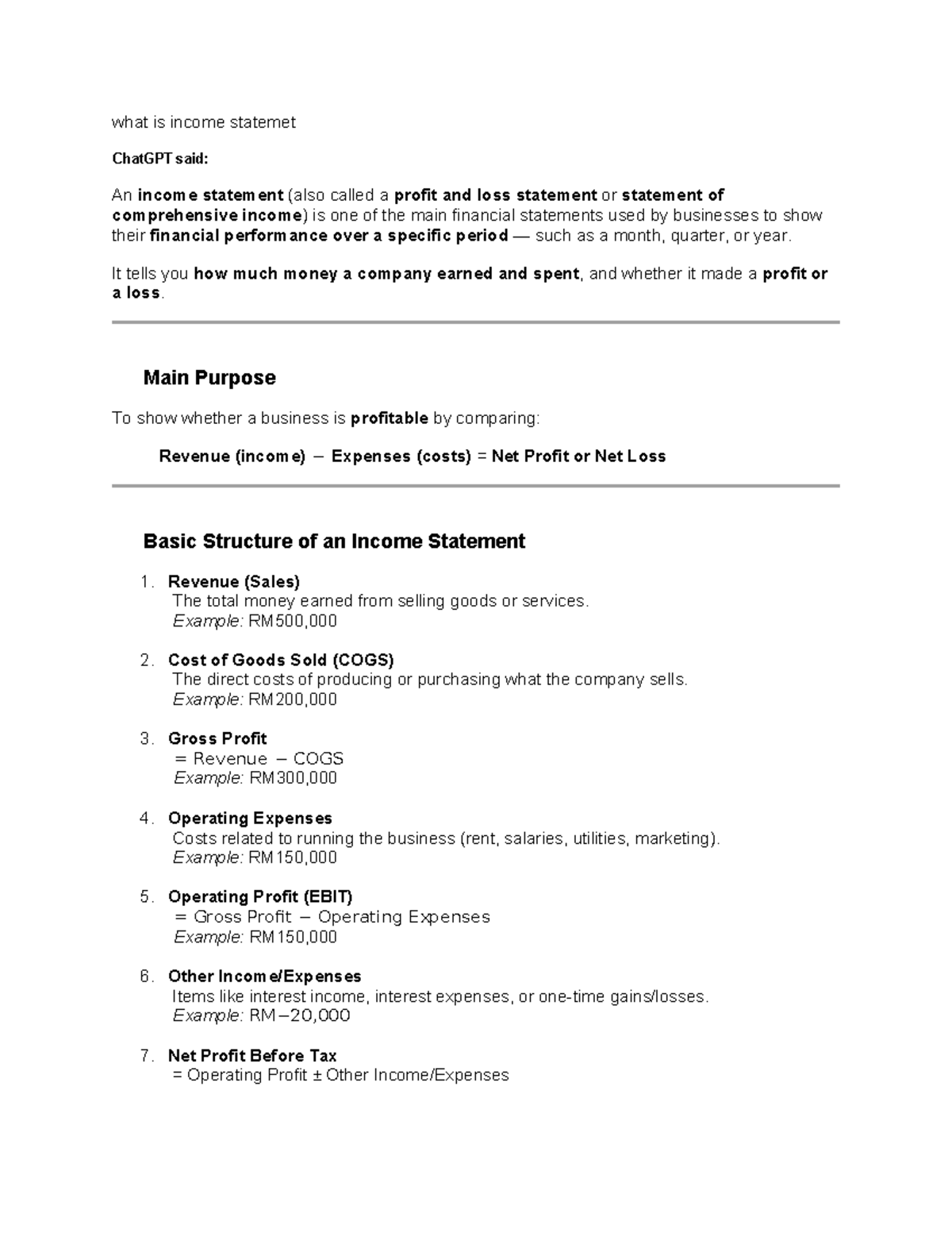 Understanding the Income Statement: Key Components and Purpose - Studocu