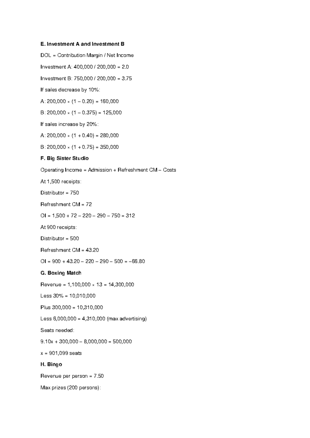 CVP Solutions: Investment Analysis & Operating Income Insights - Studocu