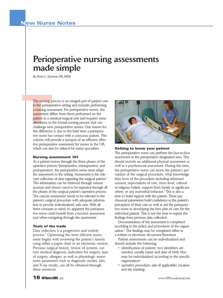 Perioperative Nursing Assessments Made Simple: Ew Nurse Notes ...