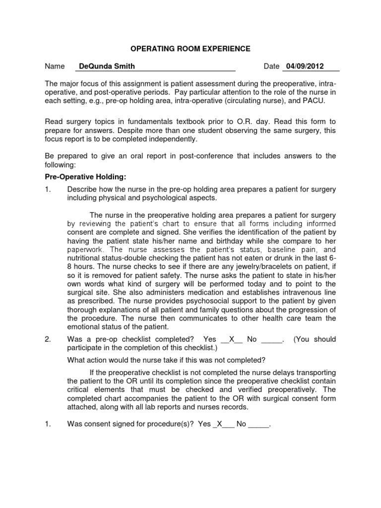 Operating Room Notes - Operating Room Related Learning Experience Level ...