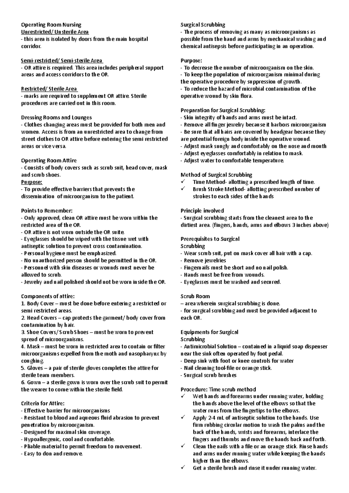 Operating Room Nursing Lecture notes | Lecture notes Nursing | Docsity