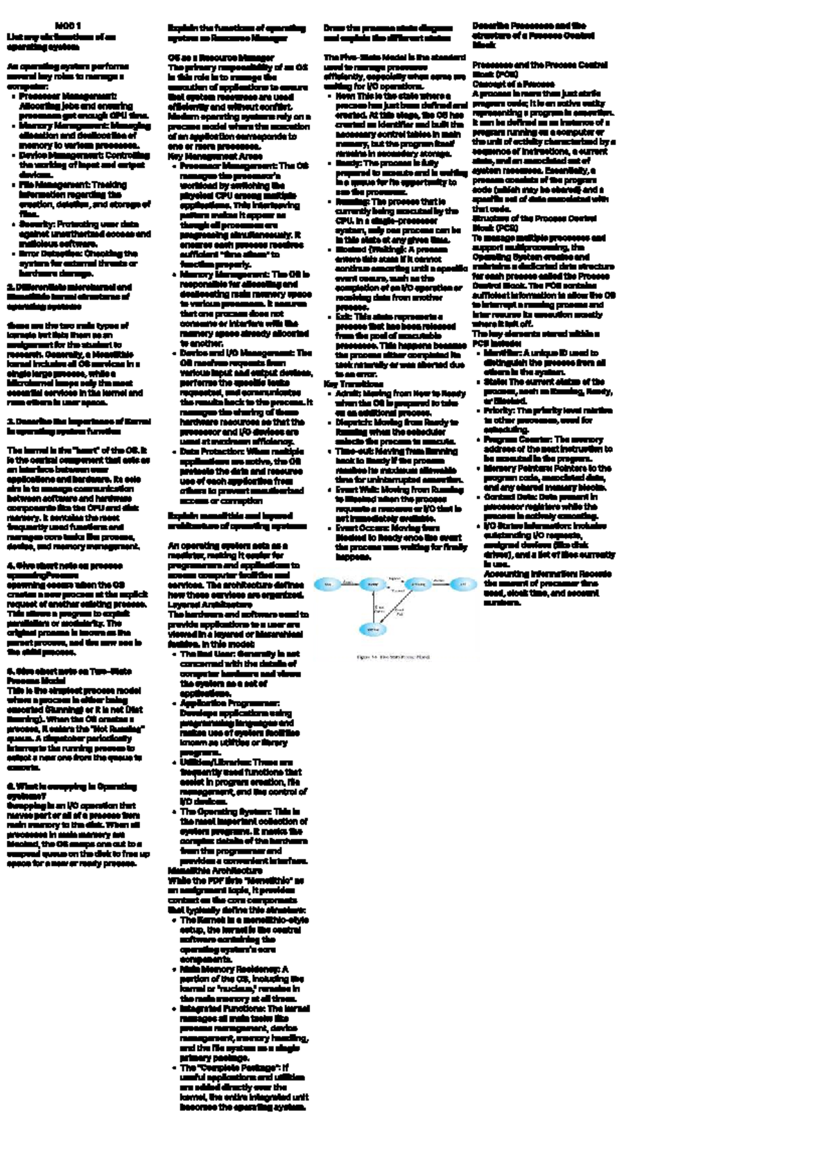 MOD 1 Functions and Structures of Operating Systems - RTOS - Studocu
