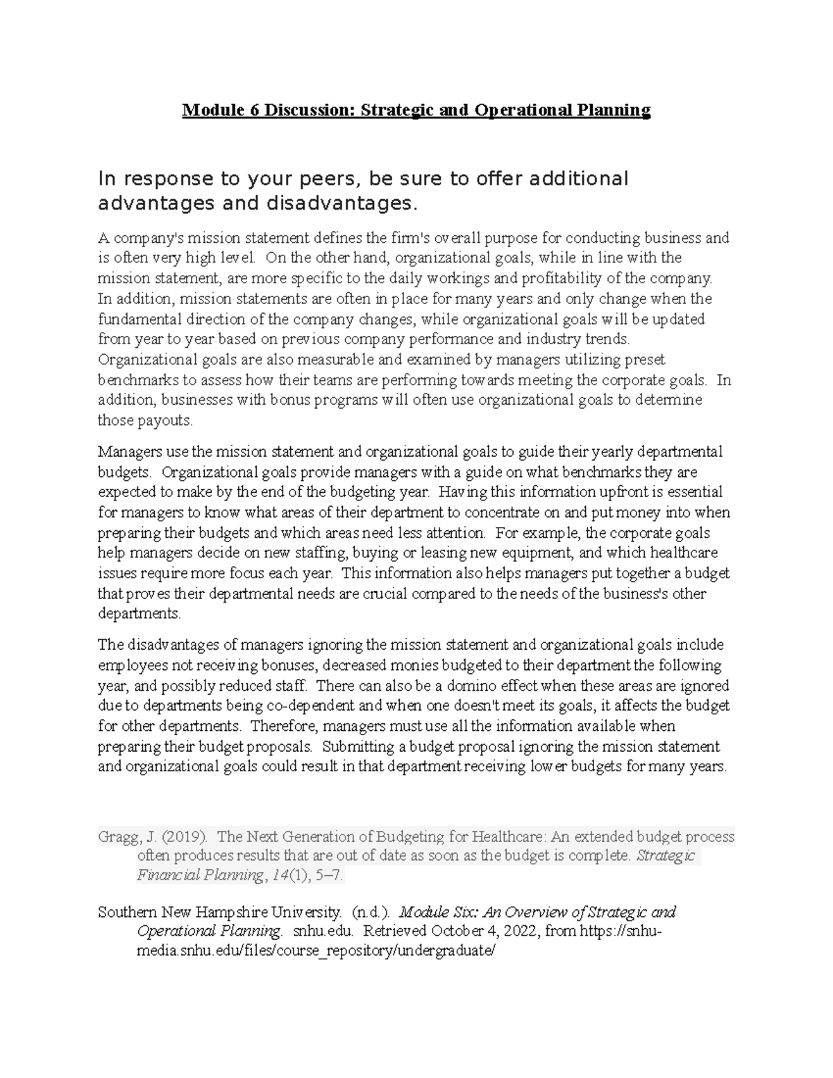 Module 6 Discussion - Module 6 Discussion: Strategic and Operational ...