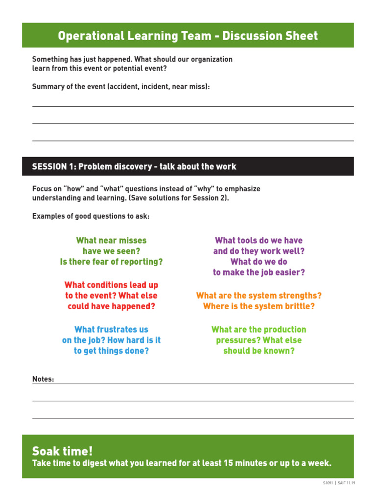 Operational Learning Team Discussion Guide | PDF | Learning | Safety