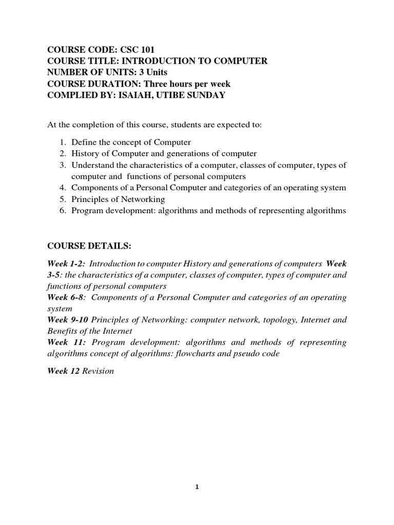 CSC 101 - Operating System-Week1 | PDF | Operating System | Computer ...