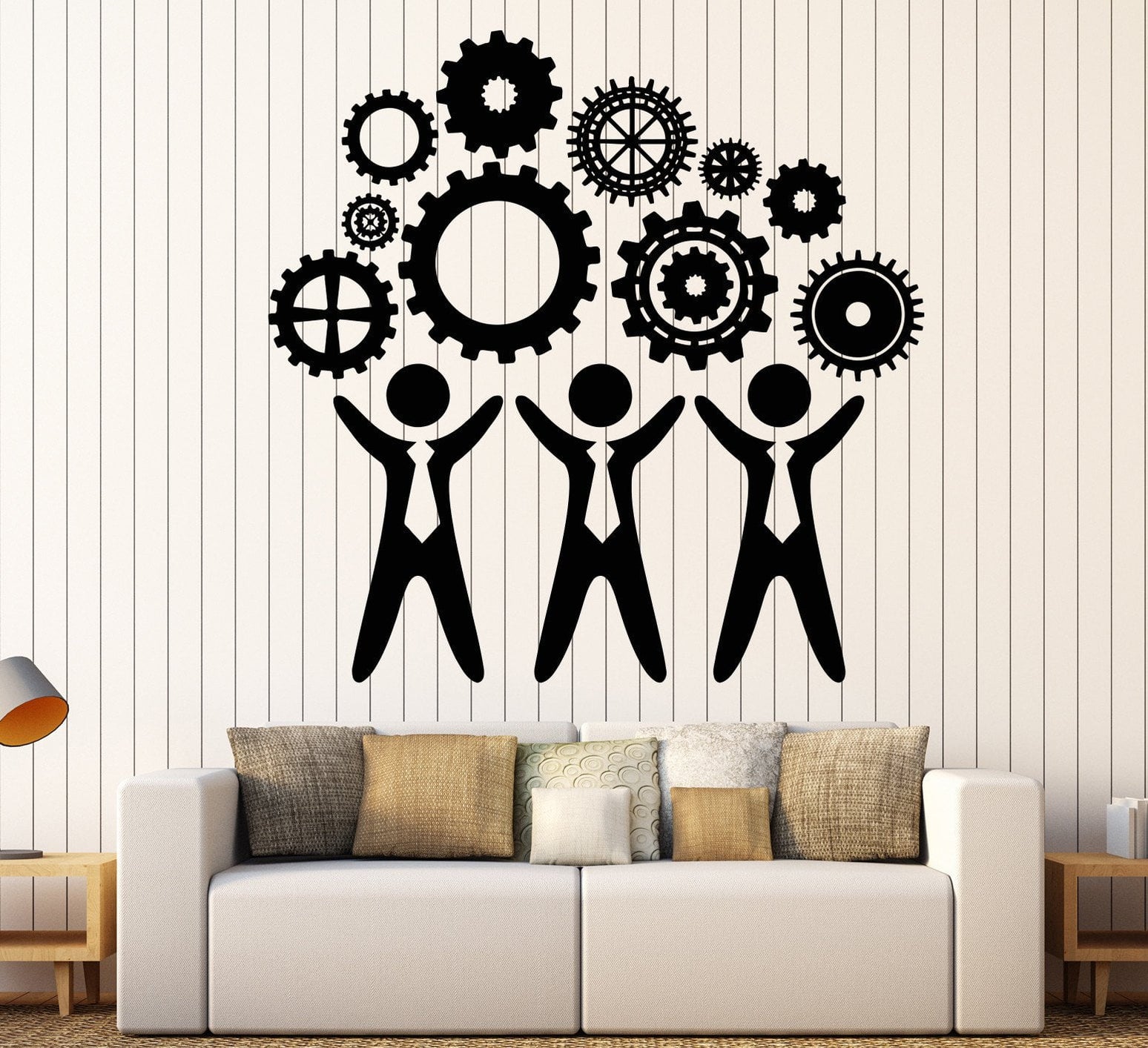 Vinyl Wall Decal Teamwork Office Decor Worker Gears Stickers Unique Gi ...
