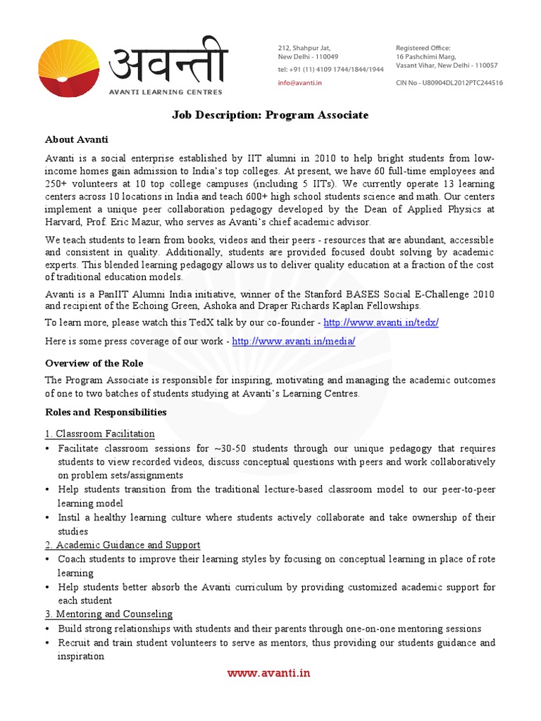 Program Associate Job at Avanti Learning | PDF | Mentorship | Curriculum